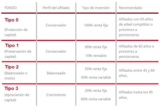 Tipos de fondo de las AFP