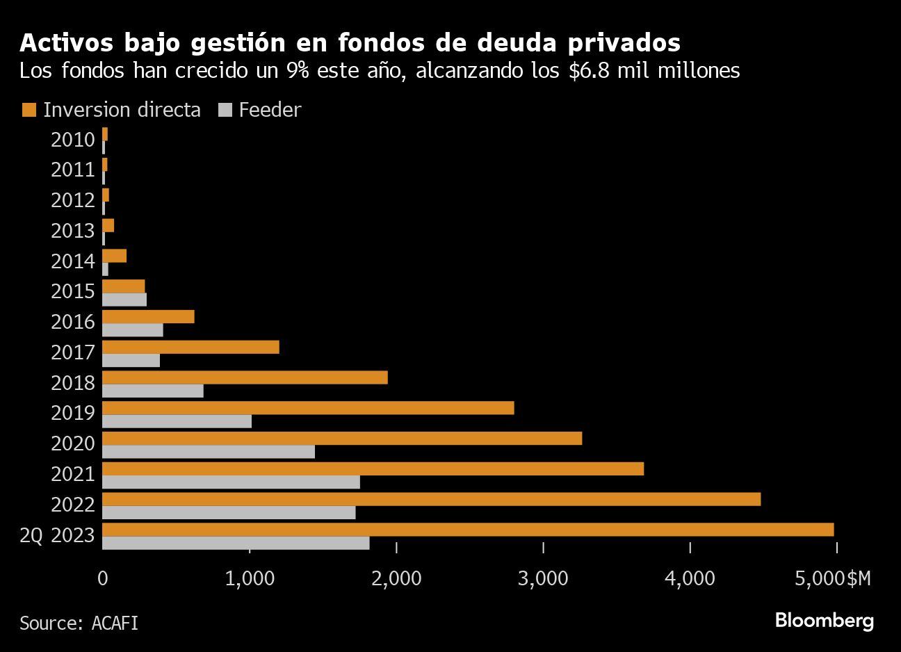Los 174 fondos de inversión en deuda privada en Chile manejaban US$ 6,800 millones en activos en el segundo trimestre del 2023, en comparación con US$ 6,200 millones a fines de 2022 y solo US$ 2,600 millones en 2018, según datos de ACAFI, la Asociación Chilena de Administración de Fondos de Inversión.