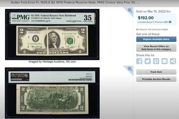 En marzo de 2022, un billete de 2 dólares emitido en 1976, conocido por su raro error de impresión denominado “gutter fold”, captó la atención de los coleccionistas y entusiastas de la numismática cuando fue vendido, de acuerdo con Heritage Auctions, por la destacada suma de US$192. Este ejemplar especial, con su defecto de pliegue visible causado por un error en el proceso de plegado durante la fabricación, no solo destaca por su anomalía técnica, sino también por su relevancia en el mercado de coleccionistas.
