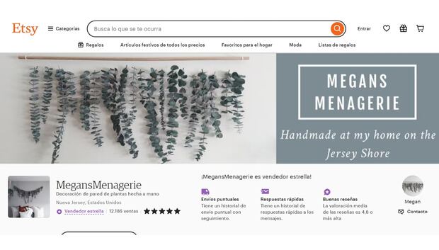 Walsh, buscando alivio, comenzó a crear decoraciones con plantas como homenaje a su padre, usando eucalipto aromático que compró por US$40. Su decoración, que incluye flores secas, generó más de US$121,400 en ventas en Etsy el año pasado. Su tienda, MegansMenagerie, está en camino de alcanzar US$9,800 en ventas mensuales hasta septiembre de este año.